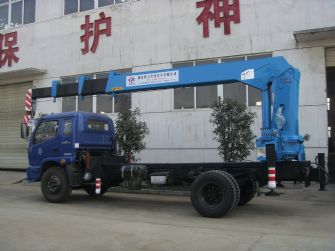 廂長4.7-4.9米,4102發動機,帶副變速,最大可選裝6.3噸吊機,該車配置的直臂式吊機,吊機布置位置為后置式,型號為TM-Z603,PYSQ141,TM-Z503、PYSQ112,質量為2720kg,2125kg,最大起升載荷為6000kg,5000kg,選裝新前圍飾件和保險杠及前部燈具,