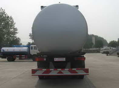 專用性能: 粉粒物料運輸車利用本車動力驅動空氣壓縮機, 將壓縮空氣經管道送入密封罐體下部的氣室,使氣室液態化床上的粉粒體懸浮成流態狀,當罐內壓力達到額定值時,打開卸料閥,流動化物料通過管道流動而進行輸送。