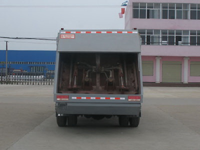 該車選裝無后翻轉機構。無后翻轉機構時該車總長為7430mm,對應后懸為2415mm。防護材料:Q235碳鋼,連接方式:左右側面防護采用焊接連接,后部防豁免。 |