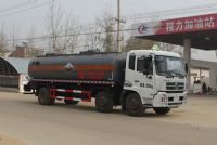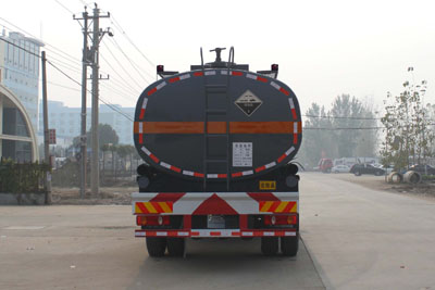 運送介質品名:甲醛溶液;介質密度:800千克/立方米;類項號:8;罐體有效容積19.6立方米;整車長/罐體外形尺寸(長×長軸×短軸)(mm)/軸距(mm)對應關系為:10750/8000×2250×1500/1800+5000,9850/7100×2400×1580/1800+4100。防護材料:Q235A碳鋼,連接方式:左右側面及后下部防護均采用焊接連接,后部防護斷面尺寸(mm):100×50,后部防護離地高度(mm):520,僅采用ISDe210 40發動機,對應油耗值為(L/100km):32.75。前輪安裝盤式制動器,僅采用底盤子午線輪胎和帶ABS的底盤,安裝帶有衛星定位功能的行駛記錄儀,ABS生產廠家:東風電子科技股份有限公司制動系統公司;型號:3631010-C2000。