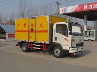 該車(chē)可選裝單排駕駛室,對(duì)應(yīng)貨箱欄板內(nèi)尺寸長(zhǎng)度為4000mm;該車(chē)可選裝排半駕駛室,對(duì)應(yīng)貨箱欄板內(nèi)尺寸長(zhǎng)度為3650mm。廂體可選裝右側(cè)不開(kāi)門(mén)樣式。廂體頂部封閉,不可開(kāi)啟:側(cè)/后防護(hù)裝置材料材質(zhì)為Q235A碳鋼,側(cè)防護(hù)與副梁與車(chē)架均采用焊接連接, ,后防護(hù)裝置與車(chē)架均采用螺栓連接,后防護(hù)斷面尺寸(寬×高)20×130(mm),離地高度為440mm. 用于運(yùn)輸具有獨(dú)立容器(瓶)包裝的:炸藥,雷管,煙花爆竹等,類(lèi)項(xiàng)號(hào):1.1B,1.1D,1.1G,1.2G,1.3G,1.4G 等;安裝帶衛(wèi)星定位功能的行駛記錄儀;配裝限速裝置,最高時(shí)速80km/h。安裝ABS系統(tǒng),ABS系統(tǒng)型號(hào)為XH-KQ4S4M-E01,生產(chǎn)企業(yè)為廣州市西合汽車(chē)電子裝備有限公司。該車(chē)選裝CA4DC2-10E4,CY4102-CE4D,CY4102-CE4F ,YN33CRD2,YN38CRD2,JE493ZLQ4 ,CA4D28C4-2發(fā)動(dòng)機(jī),對(duì)應(yīng)的發(fā)動(dòng)機(jī)油耗申報(bào)值為(L/100km):12.00 /12.14/11.82/11.88 /12.22/11.80/12.00