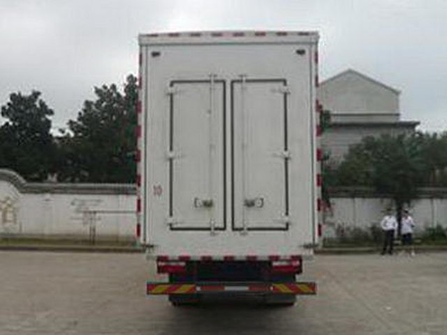 1.隨底盤選裝駕駛室,導(dǎo)流罩,選裝后部開門方式;2.選用5300,5700軸距,整車長度/軸距/前懸/后懸的尺寸對(duì)應(yīng)關(guān)系:1)9980/5700/1470/2810,2)9980/5700/1400/2880,3)9980/5300/1400/3280;3.車廂頂棚封閉,并采用衍架結(jié)構(gòu),可升降,車廂兩側(cè)板可展開,與頂棚形成整車舞臺(tái)頂棚;活動(dòng)舞臺(tái)板可折疊于車廂內(nèi),通過展開裝置展后與固定舞臺(tái)臺(tái)面形成整車舞臺(tái)臺(tái)面;底盤大梁部分設(shè)有支撐裝置,4.側(cè)面及后下部防護(hù)裝置連接方式為螺栓連接,材料材質(zhì)為Q235,后防護(hù)離地高度為520mm,斷面尺寸長×寬為:140mm×45mm;5.安裝具有衛(wèi)星定位功能的行駛記錄儀;6.發(fā)動(dòng)機(jī)CA6DF4-20E4,YC6J200-42,CA6DF4-18E4,YC6J180-46,YC4E160-42,CA4DF4-17E4,CA4DLD-17E4R,JND412D165-42,WP4.165E40,WP6.180E40的油耗申報(bào)值(L/100km)分別為26.5,26.5,26.1,26.1,25.9,26.0,26.0,25.1,25.1,26.2;7.ABS系統(tǒng)控制器型號(hào)/生產(chǎn)企業(yè):CM4XL-4S/4K(4S/4M)/廣州市科密汽車制動(dòng)技術(shù)開發(fā)有限公司;8.選裝前霧燈、前組合燈、前圍面板、保險(xiǎn)杠、后視鏡;9.隨底盤選裝駕駛室. |