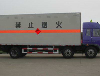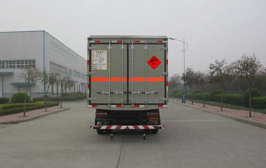 專用性能: 我公司專業生產東風系列,江鈴系列,江淮系列,北汽奧鈴系列,北汽時代系列,北汽歐曼系列,慶鈴系列,解放系列等爆破器材運輸車,廂體為雙層金屬骨架結構,外部為冷扎鋼板,內壁采用鋁合金板蒙面,夾層為隔熱阻燃材料填充。設置對開門,如需安裝抗暴容器則增開側門,側壁設有防雨功能自然通風窗口,以使廂內外空氣流動,廂體內部做防靜電處理,廂體底部與廂內前部鋪有阻燃導靜電膠板,并與底盤等電位連接,通過車輛后端的導靜電裝置與大地相連,可防止靜電火花的產生和車輛靜電及時釋放,提高車輛的安全性。廂體內部前面和側面裝有固定拉環,與捆綁帶使用捆綁貨物以避免移動,保證安全。