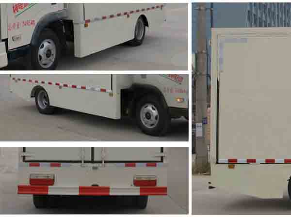 貨廂頂部封閉,不可開(kāi)啟。儲(chǔ)能裝置種類(lèi)/型號(hào)/生產(chǎn)企業(yè):磷酸亞鐵鋰電池/IFP14114198/駱駝集團(tuán)新能源電池有限公司;電機(jī)/電機(jī)控制器型號(hào)/生產(chǎn)企業(yè):TZ365XS-YBM301/南京越博動(dòng)力系統(tǒng)股份有限公司,KTZ54X33S-YBC301/南京越博動(dòng)力系統(tǒng)股份有限公司;電機(jī)功率/峰值功率:60/100Kw,該產(chǎn)品的技術(shù)階段為發(fā)展期,ABS系統(tǒng)生產(chǎn)廠家/型號(hào):廣州市科密汽車(chē)電子控制技術(shù)有限公司/CM4XL-4S/4K(4S/4M),防護(hù)材料:Q235A碳鋼,連接方式:左右側(cè)面部防護(hù)為裙邊結(jié)構(gòu)故側(cè)防護(hù)豁免,后部防護(hù)裝置與車(chē)架采用焊接連接,后部防護(hù)斷面尺寸(mm):120×50,后部防護(hù)離地高度(mm):475。