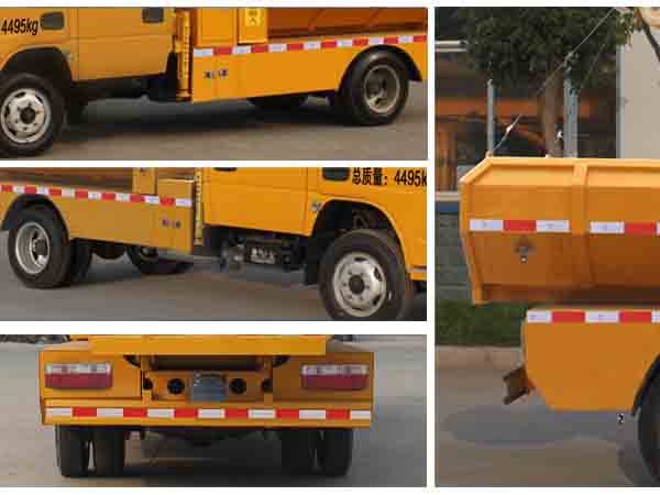 隨底盤選裝前面罩以及前霧燈.選裝液壓卷盤上置。防護材料:Q235A碳鋼,連接方式:左右防護(為整體結構)及后下部防護均采用焊接連接,后部防護斷面尺寸(mm):100×50×5,后部防護離地高度(mm):440。ABS廠家及型號:襄陽東風隆誠機械有限責任公司/ABS/ASR-24V-4S/4M.