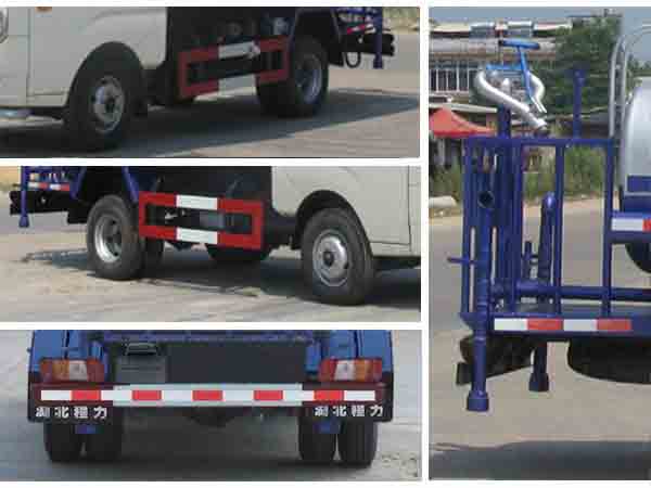 整車備注: 1、運輸介質:水,介質密度:1000千克/立方米, 罐體有效容積:1.68立方米,罐體外形尺寸(長×長軸×短軸)(mm):2600×1100×800。防護材料:Q235A,連接方式:側防護與車輛車架用螺栓連接與車廂焊接加螺栓連接,后防護與車架螺栓連接,后部防護斷面尺寸(mm):120×50,后部防護離地高度(mm):470。3、ABS系統控制器型號:YF8,ABS系統控制器生產企業:武漢元豐汽車電控系統有限公司。4、文字噴圖位置、車輛顏色及局部細節可變化。