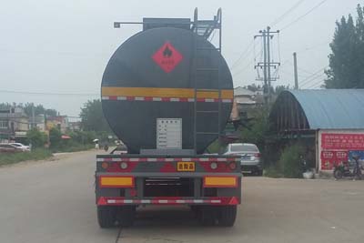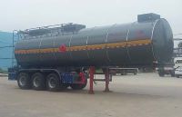 采用適用于牽引危險(xiǎn)品運(yùn)輸半掛車(chē)的牽引車(chē)。運(yùn)輸介質(zhì):瀝青, 稀釋瀝青, 路油, 介質(zhì)密度為:0.9噸/立方米; 類(lèi)項(xiàng)號(hào):3, 罐體有效容積:34.1立方米, 罐體外形尺寸(長(zhǎng)度×直徑)(mm):9950×2260, 罐體保溫層厚度為80mm。防護(hù)材料:Q235A碳鋼, 連接方式:左右側(cè)面及后下部防護(hù)均采用焊接連接, 后部防護(hù)斷面尺寸(mm):140×50, 后部防護(hù)離地高度(mm):500。ABS生產(chǎn)廠家:廣州市科密汽車(chē)制動(dòng)技術(shù)開(kāi)發(fā)有限公司, ABS型號(hào):CM2XL-4S/2K(4S/2M)。