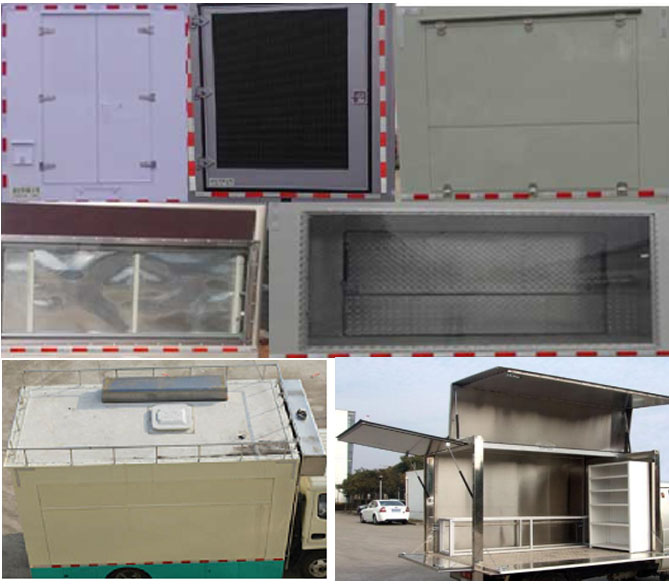 左側右側后側選裝不同結構形式的側翻門、吧臺、舞臺、遮陽板、裝玻璃窗、亦可選裝LED屏舉升或者不舉升;