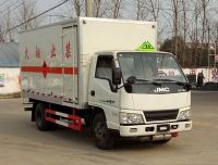 該車適用于運輸危險品。廂體頂部封閉, 不可開啟。該車用于運輸具有獨立容器包裝的易燃氣體:液化石油氣, 原油氣, 壓縮天然氣, 乙炔, 甲烷, 乙烷, 丙烷, 丁烷, 丙烯, 丁烯, 二甲醚, 硫化氫, 打火機或打火機加油器(裝有易燃氣體), 壓縮氫, 類項號:2.1; 運輸具有獨立容器包裝的非易燃無毒氣體:液化氣體(非易燃, 充有氮, 二氧化碳或空氣), 壓縮氧(氮, 空氣, 氦, 氬, 氖), 二氧化碳, 類項號2.2。防護材料:Q235A碳鋼, 連接方式:左右側面及后下部防護均采用焊接連接, 后部防護斷面尺寸(mm):100×50, 后部防護離地高度(mm):420。僅采用底盤子午線輪胎和帶ABS的底盤, 該車前輪安裝盤式制動器, 前置排氣管, 裝配限速裝置, 限速80km/h。安裝帶有衛星定位功能的行駛記錄儀。ABS系統型號:APG3550500A, ABS系統生產廠家:浙江亞太機電股份有限公司。油耗對應關系(L/100km):13.0(JX493ZLQ5)。隨底盤選裝駕駛室。可選裝側門型式及位置, 選裝后部液壓尾板; 廂體顏色可變化, 文字噴涂位置可變化。可選裝不開側門時, 整車寬為1950mm。后部液壓尾板收起狀態長度是250mm。危險貨物運輸車輛的類型(FL型車輛)。