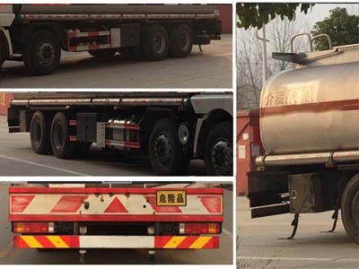 該車(chē)適用于危險(xiǎn)品運(yùn)輸。類項(xiàng)號(hào):3; 罐體有效容積:25.4立方米, 罐體外形尺寸(長(zhǎng)×長(zhǎng)軸×短軸)(mm)為:9000×2450×1650。防護(hù)材料:Q235A碳鋼, 連接方式:左右側(cè)面及后下部防護(hù)均采用焊接連接, 后部防護(hù)斷面尺寸(mm):100×50, 后部防護(hù)離地高度(mm):470。僅采用底盤(pán)子午線輪胎型號(hào)(11R22.5 18PR, 12R22.5 16PR, 12R22.5 18PR, 295/80R22.5 16PR, 295/80R22.5 18PR)和帶ABS的底盤(pán); 該車(chē)前輪安裝盤(pán)式制動(dòng)器, 前置排氣管, 裝配限速裝置, 限速80km/h。安裝帶有衛(wèi)星定位功能的行駛記錄儀。ABS系統(tǒng)生產(chǎn)廠家及型號(hào)為:西安正昌電子有限責(zé)任公司(型號(hào):ZQFB-V)。油耗對(duì)應(yīng)關(guān)系:42.5(WP7.300E51), 42.2(WP9H310E50), 42.2(WP9H336E50), 42.5(WP7.270E51)。車(chē)輛顏色可選, 文字噴涂位置可變化。隨底盤(pán)選裝同系列高低駕駛室、保險(xiǎn)杠、后視鏡及后組合燈具。整車(chē)長(zhǎng)/軸距/后懸(mm)對(duì)應(yīng)關(guān)系為:11950/1800+4575+1400/2690, 11950/1800+4175+1400/3090。危險(xiǎn)貨物運(yùn)輸車(chē)輛的類型(FL型車(chē)輛)。