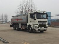 該車適用于危險品運輸。類項號:3, 罐體有效容積:21.1立方米。罐體外形尺寸(長×長軸×短軸)(mm):7000×2450×1650。防護材料:Q235A碳鋼, 連接方式:左右側面及后下部防護均采用焊接連接, 后部防護斷面尺寸(mm):110×50, 后部防護離地高度(mm):510。僅采用底盤子午線輪胎型號(11.00R20 18PR, 12.00R20 16PR, 12R22.5 18PR, 295/80R22.5 18PR)和帶ABS的底盤, 該車前輪安裝盤式制動器, 前置排氣管, 裝配限速裝置, 限速80km/h。安裝帶有衛星定位功能的行駛記錄儀。ABS系統生產廠家及型號為:廣州市科密汽車制動技術開發有限公司(型號:CM4XL-4S/4K), 西安正昌電子有限責任公司(型號:ZQFB-V)。車輛顏色可選, 文字噴涂位置可變化。整車長/前懸/軸距/后懸(mm)對應關系為:9910/4575+1350/1525/2460, 9910/4575+1350/1585/2400, 9910/4375+1350/1525/2660, 9910/4375+1350/1585/2600。發動機油耗對應關系(L/100km):37.2(WP6.245E50), 37.2(WP7.270E51), 37.2(WP7.300E51), 36.4(WP9H336E50), 32.0(ISM11E5 345)。隨底盤選裝保險杠, 選裝不帶走臺。危險貨物運輸車輛的類型(FL型車輛)。