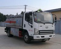 該車適用于危險品運輸。類項號:3, 罐體有效容積:5.1立方米。罐體外形尺寸(長×長軸×短軸)(mm):①3100(實際長4000, 其中罐體前部900mm長用于安裝加油機用)×1750×1150; ②(選裝加油機下置時)4000×1700×1100。可裝配加油機型號及生產企業:BL1111Z/珠海市貝林加油設備有限公司中山分公司, HS1812B/托肯恒山科技(廣州)有限公司, SKES-1112/恒和嘉華科技有限公司, SKDS-2001A/上海伯萊機械有限公司, SK20QF-111A, SK20QF-222A/鄭州三金石油設備制造有限公司, CS20D1110F/正星科技有限公司, JSK-70B1121CZ, JSK-70B1121C, JSK45B1121C/穩恩佳力佳(北京)石油化工設備有限公司, HT-YV60E/隨州市華特專用設備有限公司, XTST121BF1/邢臺正潤通科技發展有限公司。防護材料:Q235A碳鋼, 連接方式:左右側面及后下部防護均采用焊接連接, 后部防護斷面尺寸(mm):120×50, 后部防護離地高度(mm):450。僅采用底盤子午線輪胎和帶ABS的底盤, 該車前輪安裝盤式制動器, 前置排氣管, 裝配限速裝置, 限速80km/h。安裝帶有衛星定位功能的行駛記錄儀。ABS生產廠家:上海萬捷汽車控制系統有限公司, ABS型號:VIE ABS-II。危險貨物運輸車輛的類型(FL型車輛)。