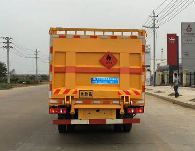 該車適用于運(yùn)輸危險(xiǎn)品, 主要用于運(yùn)輸具有獨(dú)立容器(瓶)包裝的液化石油氣, 丁烷, 乙炔, 乙烷, 丙烷, 丁烯, 打火機(jī)或打火機(jī)加油器, 二氧化碳, 壓縮氧(氮, 空氣, 氦, 氬, 氖), 類項(xiàng)號(hào):2.1, 2.2。該車運(yùn)輸?shù)慕橘|(zhì)為2.1項(xiàng)易燃?xì)怏w時(shí), 車輛采用”易燃?xì)怏w”標(biāo)識(shí)牌, 運(yùn)輸?shù)慕橘|(zhì)為2.2項(xiàng)非易燃無(wú)毒氣體時(shí), 車輛采用”不燃?xì)怏w”標(biāo)識(shí)牌。貨欄顏色可變化, 文字噴涂位置可變化。可選裝后部液壓尾板, 后部液壓尾板收起狀態(tài)長(zhǎng)度是250mm。整車長(zhǎng)/軸距/后懸對(duì)應(yīng)關(guān)系為(mm):9000/5000/2570, 8600/4700/2470, 8400/4500/2470。發(fā)動(dòng)機(jī)ISD210 50, ISB210 50, ISB190 50對(duì)應(yīng)的油耗值分別為:29.0, 29.1, 29.1。防護(hù)材料:Q235A碳鋼, 連接方式:左右側(cè)面及后下部防護(hù)均采用焊接連接, 后部防護(hù)斷面尺寸(mm):100×40, 后部防護(hù)離地高度(mm):490。該車安裝帶有衛(wèi)星定位功能的行駛記錄儀, 僅采用前盤制動(dòng)器和安裝ABS以及前置消聲器的底盤, 采用子午線輪胎, 安裝限速裝置, 限速80km/h。專用裝置為固定用卡槽。安裝ABS, ABS型號(hào):3631010-C2000, 4460046440; 生產(chǎn)廠家:東科克諾爾商用車制動(dòng)系統(tǒng)(十堰)有限公司, 威伯科汽車控制系統(tǒng)(中國(guó))有限公司。