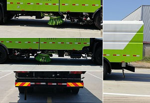 其它 | 該車用于城市路面的沖洗,清掃作業.防護材料:Q235A碳鋼,連接方式:左右側面防護與專用裝置(掃刷)相干涉故豁免,后下部防護與副梁車架采用螺栓連接,后部防護斷面尺寸(mm):250×50,后部防護離地高度(mm):500.ABS,型號/生產廠家:3631010-C2000/東科克諾爾商用車制動系統(十堰)有限公司,ABS-E 4S/4M/生產廠為威伯科汽車控制系統(中國)有限公司.整車長/軸距/前懸/后懸對應關系為(mm):9100/5600/1400/2100;9100/5600/1475/2025;8700/5200/1400/2100;8200/4700/1400/2100;8000/4500/1400/2100;7900/4200/1400/2300;7900/3950/1400/2550;7650/3800/1400/2450. |