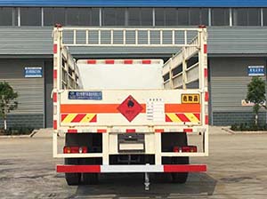 其它 | 該車適用于運輸危險物品為危化品運輸車。主要用于運輸具有獨立容器(瓶)包裝的液化石油氣,丁烷,乙炔,乙烷,丙烷,丁烯,打火機或打火機加油器,二氧化碳,壓縮氧(氮,空氣,氦,氬,氖),類項號:2.1,2.2。該車運輸的介質為2.1項易燃氣體時,車輛采用”易燃氣體”標識牌,運輸的介質為2.2項非易燃無毒氣體時,車輛采用”不燃氣體”標識牌。整車長/軸距/前懸/后懸對應關系為(mm):9000/5000/1430/2570, 8600/4700/1430/2470,該車安裝帶有衛星定位功能的行駛記錄儀,僅采用前盤制動器和安裝ABS以及前置消聲器的底盤,采用子午線輪胎,前置排氣管,安裝限速裝置,限速80km/h。安全裝置為導靜電帶,用于防止靜電。側防護和后防護裝置材料材質為Q235B碳鋼,側防護與箱體底部焊接連接,后防護裝置與車架采用焊接連接。后防護截面尺寸(mm):140×50,離地高度為500mm。ABS型號:3631010-C2000,ABS 8;ABS生產廠家:東科克諾爾商用車制動系統(十堰)有限公司。 隨底盤選裝駕駛室前面罩,選裝側窗玻璃;駕駛室頂部中間三個裝飾燈為選裝件;前霧燈為選裝件;駕駛室前臉擾流罩為選裝件。 |