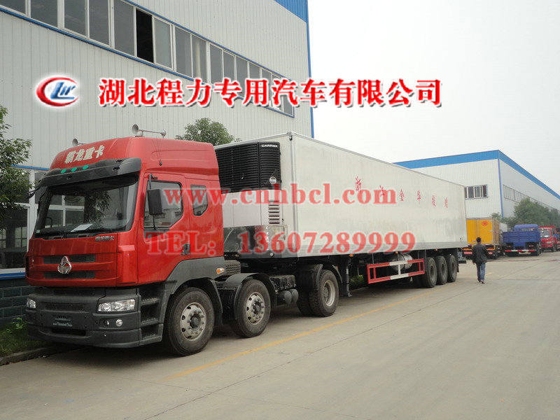 選裝零下5-10-15度獨立制冷機組,內外蒙皮為玻璃鋼結構,行走部分為13噸富華橋,11.00-20鋼絲胎.