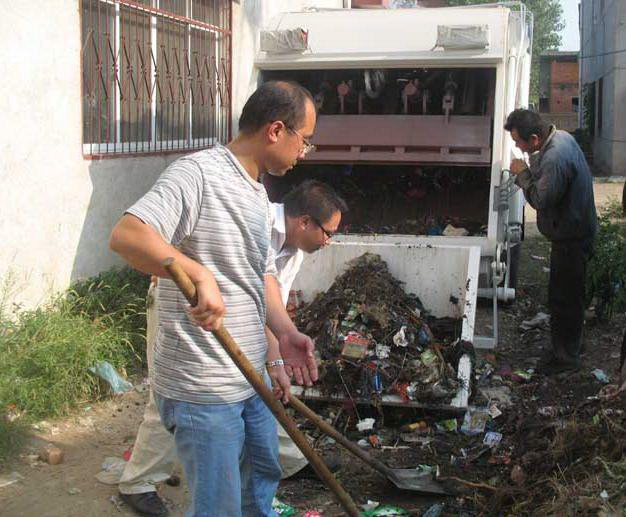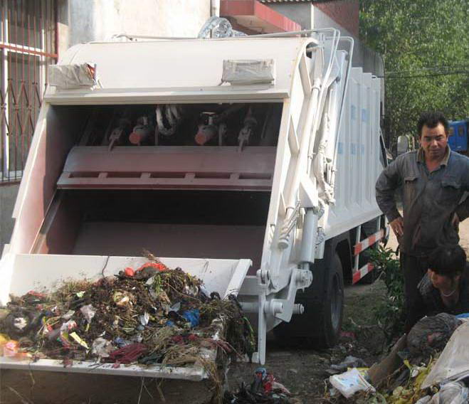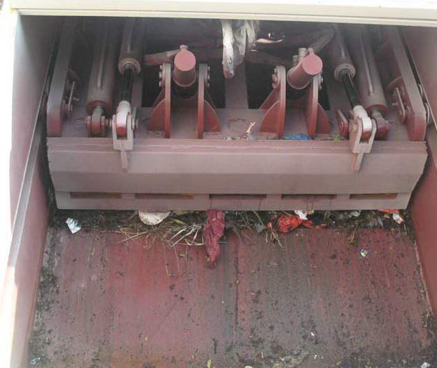 壓縮式垃圾車操作第五步,主壓板推出壓縮垃圾塊