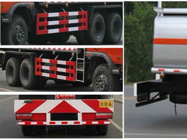 運(yùn)送介質(zhì)品名: 汽油;介質(zhì)密度:700千克/立方米;類項號:3;罐體有效容積: 22.47立方米。罐體外形尺寸(長×長軸×短軸)(mm):7100×2460×1700。軸距(mm)4350+1300對應(yīng)后懸(mm)2805,軸距(mm)4350+1350對應(yīng)后懸(mm)2755。隨底盤選裝駕駛室。防護(hù)材料:Q235碳鋼,連接方式:左右側(cè)面及后下部防護(hù)均采用焊接連接,后部防護(hù)斷面尺寸(mm):100×50×5,后部防護(hù)離地高度(mm):520。