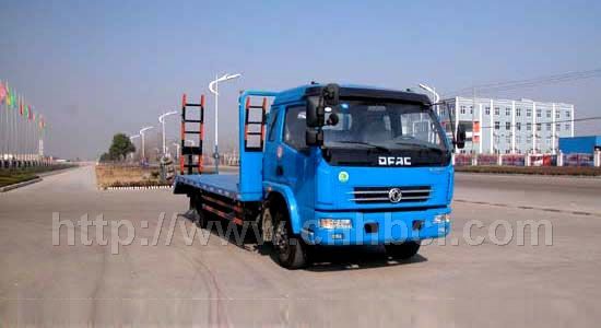 東風平板運輸車車架低,承載能力大,使用壽命長。前輪可轉向,轉角達90°,在施工道路不平的情況下,能保持所有輪胎同時著地,保證車架和輪胎受力均衡合理,確保所載設備的安全。車輛裝有腳剎系統和手剎制動。車輛尾部安裝專用機械式半自動爬梯,履帶式工程設備可以自行上下平臺(無需其他任何起吊設備及輔助工具)直接與主車掛鉤連接。