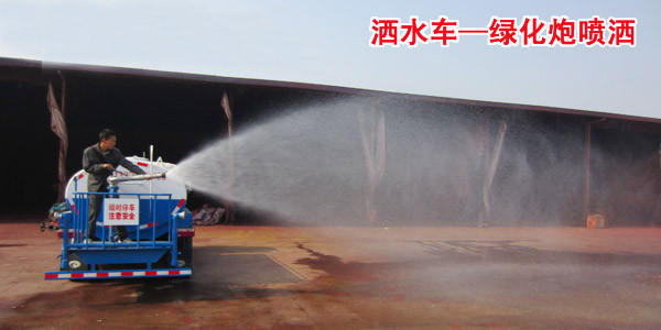 程力灑水車前裝有鴨形噴嘴或圓頭沖嘴,后面裝有圓柱開灑水噴嘴或蓮蓬頭噴嘴,后部有一工作平臺,裝配有水炮。后部還可裝8個噴嘴(選裝)。噴水器一般用于沖洗街道,起除塵和降溫作用,其噴水器可以用調節噴嘴螺紋的方法改變噴水器的噴灑方向和角度,高射水炮可以用于城鄉園林綠化及應急消防。蓮蓬嘴可以澆落路中間噴水器沖起的灰塵,起到清潔空氣的作用。
