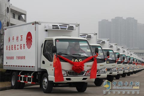 據了解,這批車將由政府相關部門贈送給"萬村千鄉市場工程"部分承辦企業,直接服務于安徽各縣市與鄉村直營連鎖、農超對接的物流配送環節中。