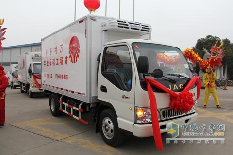 據了解,此次230臺中標車型均為江淮高端輕卡帥鈴Ⅱ廂式和冷鏈運輸車。該產品依托江淮商用車全球五層次研發體系,整車采用一體化設計研發,與改裝企業實現無縫式上裝匹配,有效保證了產品使用可靠性。同時,該車型還配備液壓制動系統,聯合盤式制動、故障診斷儀等配置,使車輛的安全性和舒適性更好的結合在一起。動力方面,其搭載的江淮自產4DA1發動機,采用德國Bosch電控高壓共軌、低噪聲齒輪等多項先進柴油機技術,不僅全面滿足國Ⅲ標準,而且具備低油耗,低排放、低速高扭的特點,百公里油耗僅8L,比同級別車型百公里油耗降低1~2L。