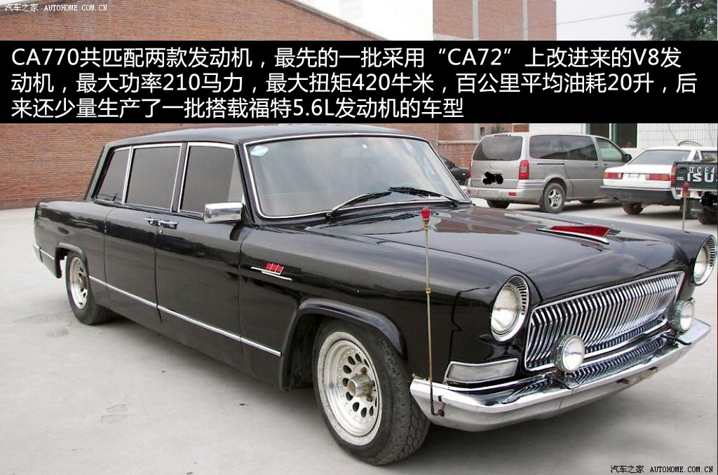 隨后在文革動蕩的幾年里,雖然技術力量和工作條件都得不到保障,但一汽僅存的技術人員還是對CA770進行了不少改進,推出了包括CA771兩排座、CA772防彈車、CA770W救護車、CA770檢閱車,以及八十年代引進美國福特公司的5.6L V8發動機的CA770-G。