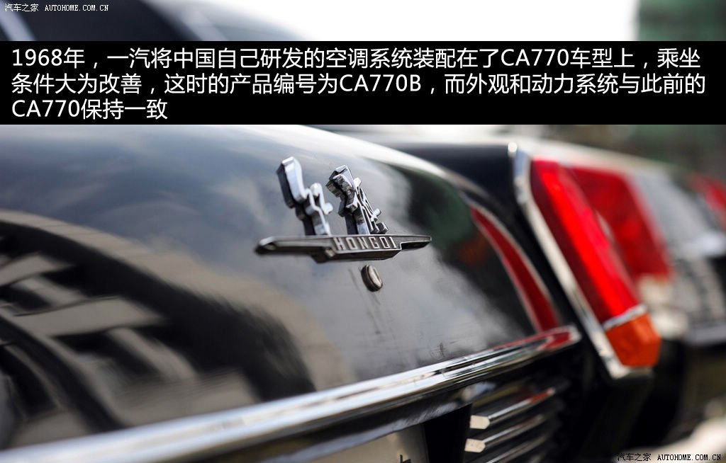 CA770定型后,經過道路試驗沒有發生重大問題,并且各項指標優于CA72,達到了預期的目標,但當時的CA770與同時代的進口高級轎車相比還存在很多不足,例如,沒有空調,照明系統弱等。1968年,CA770投產三年后,中國將自己研發的空調系統裝配在了CA770車型上,乘坐條件大為改善,這時的產品編號為CA770B。