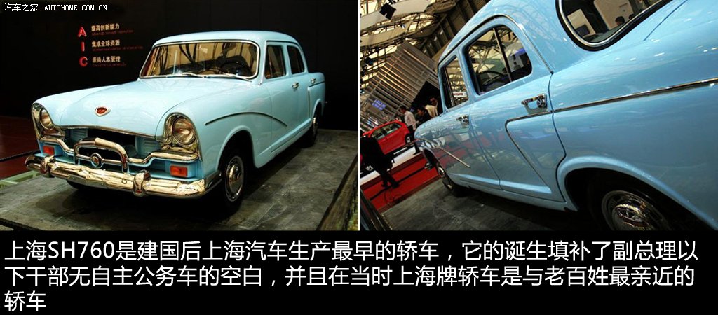 上海SH760是建國后上海汽車生產最早的轎車。當時副總理以上級別的官員已經乘坐了紅旗轎車,而副總理以下的干部除了已顯老態的蘇聯伏爾加、波蘭華沙外還沒有合適的國產公務車,上海牌SH760的誕生正好彌補這一空白。相比紅旗的高高在上,上海牌在當時是與老百姓最親近的轎車。有上海的老人家回憶,60年代上海新娘子出嫁,一部上海牌轎車做婚車能引起全弄堂的轟動和羨慕。