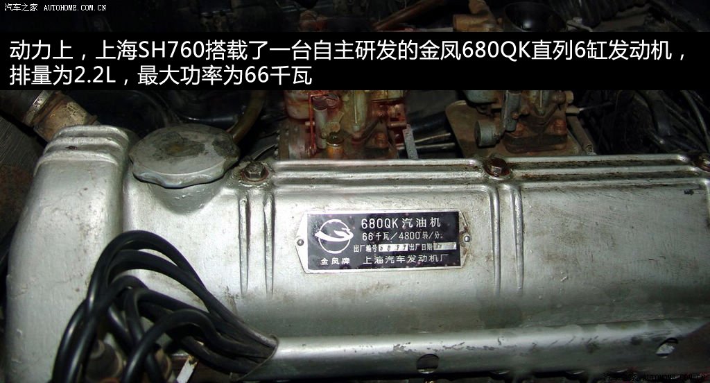 上海牌SH760轎車的外形低調持重,色彩主要以白色、黑色和淡藍色,而動力上,這款車型搭載了自主研發的金鳳680QK直列6缸發動機,排量為2.2L,最大功率為66千瓦。在改革尚未放開的年代里,這款車型幾乎主宰了那個時代,成為我國公務用車和出租車的主要車型。1958年至1991年共生產了77054輛。