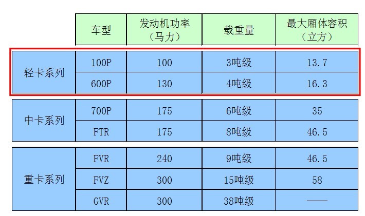 一、五十鈴全系列商用車型譜