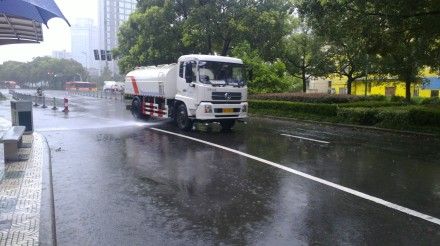 今早,臺風"海葵"登錄象山,給寧波帶來了不小的影響,微博上網民們對積水、樹木倒下等現象熱議紛紛。然而網友@147分卻拍到了一張市環衛處的灑水車在暴雨中向城市路面灑水的照片,并用文字說明:臺風天,寧波各部門都在努力排水,灑水車仍獨自游樂!