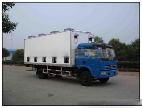 車輛型號 東風康霸廂式雛雞運輸車 公告批次 206 外形尺寸(mm) 7950,8530×2260×3310 總質量(Kg) 8610 貨廂尺寸(mm) 5650,6200×2060×1840 額定載質量(Kg) 2795,2400 接近/離去角 28/12,28/10.5 整備質量(Kg) 5620,6015 前懸/后懸(mm) 1270/2280,1270/2860 最高車速(km/h) 90 車輛識別代碼 LGDGTA1P××××××××× 底盤型號 EQ1090GJ 發動機型號 發動機生產企業 排量 功率 ISBE150 30 ISDe140 30 東風康明斯發動機有限公司 東風康明斯發動機有限公司 3922 4500 110 103 燃料種類 柴油 排放標準 GB17691-2005(國Ⅲ),GB3847-2005 軸數 2 輪胎數 6 軸距 4400 輪胎規格 8.25-16,8.25-20 軸荷 2580/6030 前輪距 1835 鋼板彈簧片數 11/13+8 后輪距 1640 制作生產說明 我公司生產的雛禽運輸車(雛雞運輸車)廂體內有通風裝置和加熱裝置,廂體上部有8個換氣扇,可換氣和進風,以保證廂體內部小雞的氧氣充分。廂體下側左右兩邊各有5個小門,可通風,加熱,換氣以保證小雞的氧氣充分。廂體內根據用戶要求定制支架。雛禽運輸車(雛雞運輸車)是在廂式車底盤的基礎上,選用優質、高強度材料,采用國際流行的分塊拼裝工藝加工而成。雛禽運輸車(雛雞運輸車)的主要特點有防雨,防曬、防塵、防盜、環保、運輸效率高等,更具有通風、保溫、裝載量大等特性。雛禽運輸車(雛雞運輸車)主要應用于雛雞、雛鴨、鮮花、樹苗等貨物的專業化運輸,是提高企業效率、降低運輸成本的必備工具。 其它 頂部整體封閉不可開啟,有通風散熱孔等裝置隨原車底盤選裝同系列駕駛室半高頂,新型遮陽板,前面罩,前保險杠,前組合燈具,車門窗..選裝側門和空調機組。選裝空調引起的質量變化在3%以內