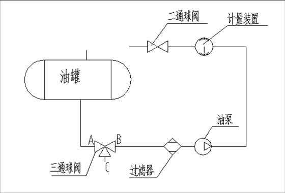 將本罐油料經泵、不經流量表輸入其它容器:關閉二通球閥,接通三通球閥的AC端。
