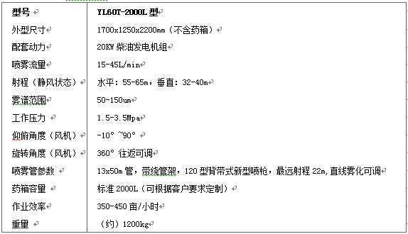 噴霧車|農藥噴灑車各種不同規格的風送式噴霧機技術參數如下: