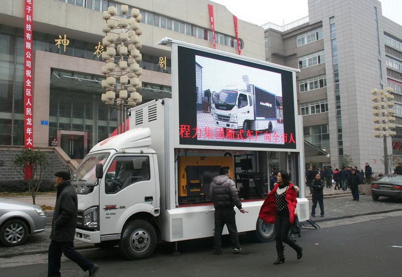 LED廣告車,LED移動廣告車,移動廣告車可用于產品推廣、品牌推廣、選秀活動、銷售現場展示、體育賽事、演唱會、音樂會等。在繁華商 自帶動力型業點、小區、廣場、公園等區域與目標消費者進行現場展示、交流、互動,宣傳范圍廣泛,可使客戶獲得最大的廣告傳播效果。組成結構一般由五部分組成。包括大屏系統、供電系統、液壓系統(有些沒有部分)、操作系統、牽引系統。供電一般采用工業380V電,或者自身發電機供電。