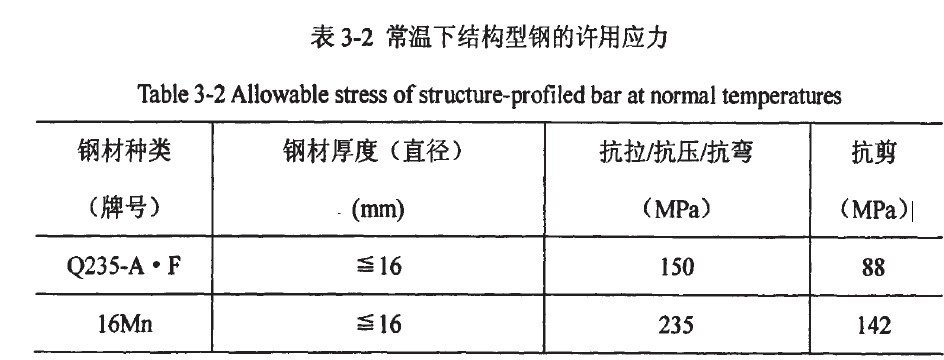 罐殼與防波板采用5083鋁合金。在我國5000系列鋁板屬于較為成熟的鋁板系列之一。5083屬于AI-Mg系合金,具有良好的塑性、較高的強度、加工性及抗蝕性,該類合金綜合性能優良。優良的抗腐蝕性能使5083合金廣泛用于海事用途如船舶,以 及汽車、飛機焊接件、地鐵輕軌,需嚴格防火的壓力容器(如液體罐車、冷藏車、冷 藏集裝箱)、制冷裝置、電視塔、鉆探設備、交通運輸設備、導彈零件、裝甲等。 查閱標準毋T 4734.2002《鋁制焊接容器》可知,板厚為4.5mm-40mm的5083鋁 合金板材在.269。.65。時許用應力為68MPa。許用拉伸應力值乘以O.8得到許用剪切 應力值。同樣可從標準JBT 4735.1997中查得結構型鋼在常溫下的許用應力,如表3.2 所示。