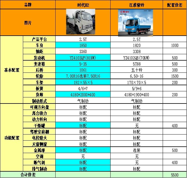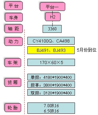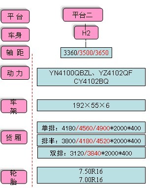 MSG-AL變速箱、鉚接170車架、電控熄火、動力轉向、電磁離合風扇、96馬力、NPR氣剎后橋、單排、前翻、離合助力、6.50R16輪胎、暖風、天窗、氣剎 | |