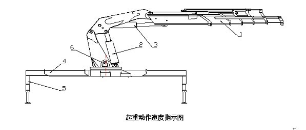 注意:如果由于起重機安裝在一輛與該起重機不能匹配的底盤上,將導(dǎo)致起重機的起重性能參數(shù)降低,那么圖中給出的參數(shù)將不再有效,同樣的,該說明書及起重機上其它位置標定的起重性能參數(shù)也同樣會降低。