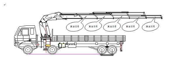 將起重機伸縮臂完全伸出,在五節伸縮臂外側涂抹黃油,在涂新油前必須用橡膠刀刮掉原來的舊黃油,然后用刷子在伸臂整個外表面涂一層黃油。