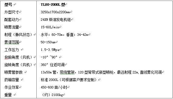 噴霧車|農藥噴灑車各種不同規格的風送式噴霧機技術參數如下: