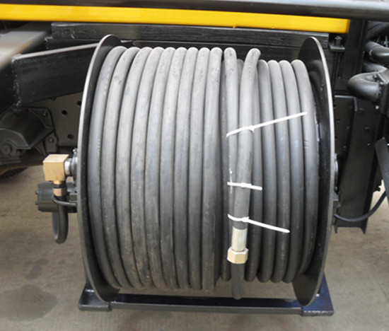前罐體為高壓清洗罐, 安裝有進口高壓泵和高壓噴水管道;可用來清洗小廣告, 沖地, 疏通污水管等.