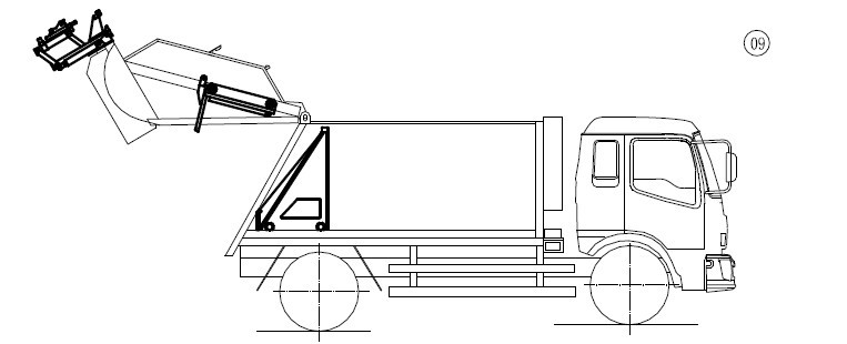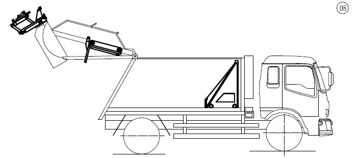 該系列車型可選裝垃圾桶液壓翻轉機構,適用于120升、140升、240升的塑料垃圾桶和350升的金屬垃圾桶。