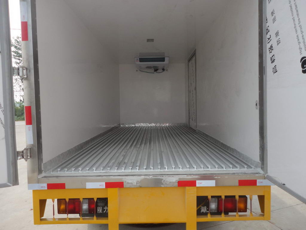 關于冷藏車保溫車廂體材料的選用方面,減少鋼結構的使用,增加強度高重量輕的材料的使用比例對廂體的減重將起到較好的效果已經成為業內的一種共識。對于冷藏保溫汽車受結構限制必須采用鋼結構的零部件,可采用高強度鋼代替普通鋼,在保證鋼構件強度的條件下,通過減薄鋼板厚度減輕廂體重量。冷藏保溫汽車廂體通常采用聚氨酯冷藏保溫廂板等新型節能保溫材料如玻璃鋼等。同傳統的材料相比,玻璃鋼具有很高的強度,其抗拉強度可達到110~450Mpa,與鋼的強度相當(普通鋼材的抗拉強度為250~350Mpa),而如果采用高強度的碳纖維代替玻璃纖維來做玻璃鋼,其強度甚至可達到1000Mpa以上。用玻璃鋼代替鋼板可以滿足冷藏車溫汽車廂體的強度要求并大幅度降低廂體重量。