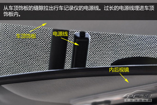 從內后視鏡處拉出行車記錄儀的電源線 。