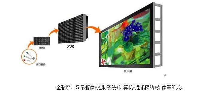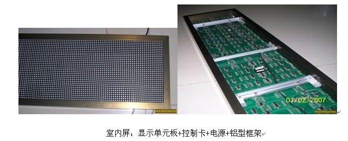 將單元板/模組/箱體按一定方式拼接在一起,加上控制卡/控制系統、電源和框架等就構成為LED顯示屏。