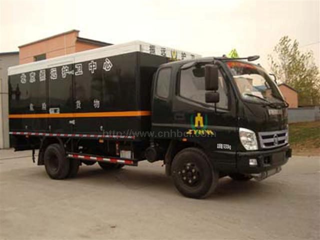 7、福田奧鈴、福田排半臥鋪爆破車、民爆車、爆破器材運輸車(貨廂尺寸mm:長4725*寬2075*高1700,載重質量4.8噸)