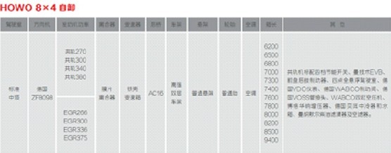 成熟可靠----上市多年來(lái),成熟HOWO已成經(jīng)典,關(guān)鍵部件大量采用國(guó)際頂級(jí)產(chǎn)品,如德國(guó)ZF轉(zhuǎn)向機(jī)和油泵;德國(guó)福士(VOSS)制動(dòng)接頭,MANN+HUMMEL燃油濾清系統(tǒng),空濾器;德國(guó)VDO儀表及電控制模塊,博格華納增壓器,德國(guó)貝洱中冷器和水箱,德國(guó)TMD盤式制動(dòng)器摩擦塊,離合器采用膜片離合器。