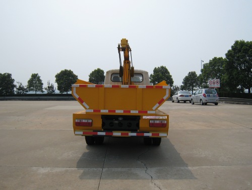 選裝新型前面罩.該車為專用作業(yè)類車輛,用于清除窨井中的淤泥,設(shè)備有清淤機械手。側(cè)面及后下部防護(hù)裝置材料為Q235,與車架采用螺栓連接,后下部防護(hù)裝置斷面尺寸(mm):120×40,離地高度:500mm.