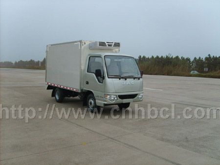 4、國四江淮冷藏車、整車型號:HFC5020XLCPW4E1B1D冷藏車,底盤型號:HFC1020PW4E1B1D,上戶噸位:0.715噸,外型尺寸:4450,4850×1640×2580(mm),貨廂尺寸:2700,3100×1520×1650(mm)